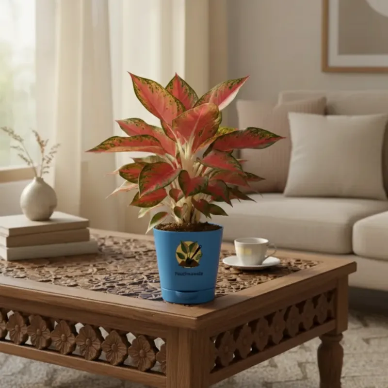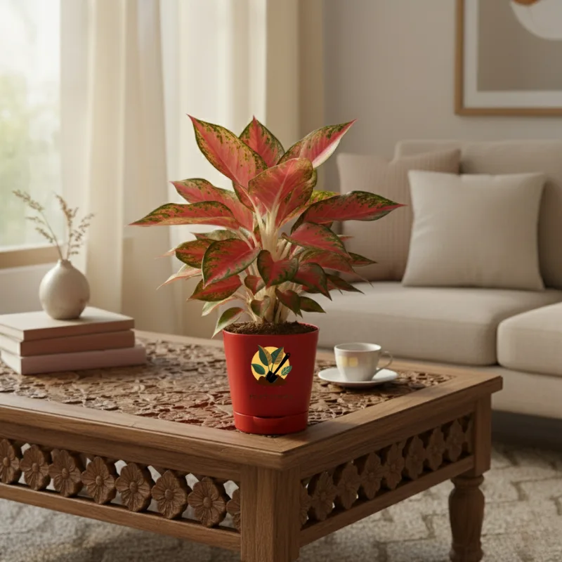 Aglaonema Red Lipstick Plant With Self Watering Pot